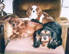If anyone would like to know the ages of their Cavaliers ancestors please contact me and I will try and give as many as possible. In saying this, have our long living Cavaliers left more than precious memories behind, but also genes for long healthy lives for their descendants. As well as collecting the ages of our "Golden Oldies" I have also been sent around 90 pedigrees from both the UK and America of Cavaliers who were suffering from heart trouble and about a month after having their vaccination their heart condition suddenly deteriorated and they died shortly afterwards. Could any Cavalier owner whose Cavalier seemed to have had an adverse reaction from their vaccination please contact me at : Bet Hargreaves so that I can pass the information on to a University that is shortly to be looking into seeing whether some of our Cavaliers could be at risk through this". Bet Hargreaves June 2000 Bet has since written to say........